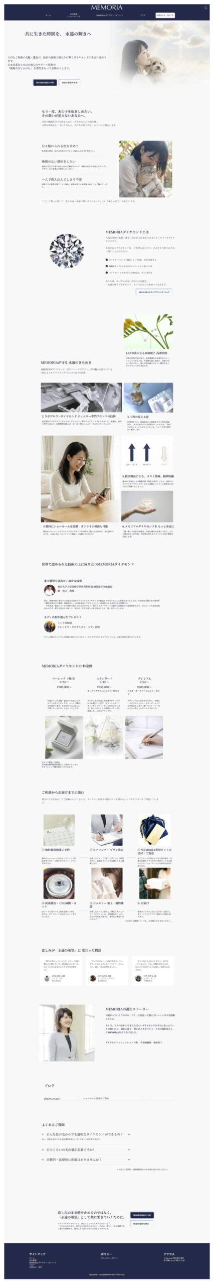 東京都江東区で、独自に研究開発した高品質なラボグロウンダイヤモンド技術を活かして、毛髪・遺毛からメモリアルダイヤモンドを作る「MEMORIA」様のホームページを制作しました。